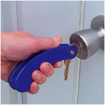 The heavy-duty plastic handle of the Key Turner III provides extra leverage for easy turning.