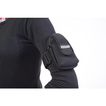 The mobile phone holder has a zipped main compartment as well as a separate front pocket.