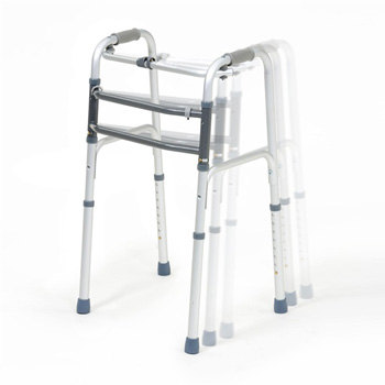 This walking aid is suitable for indoor and outdoor use. It is made from lightweight aluminium tubing and folds easily for easy transportation and storage. It features height adjustable legs with rubber tips for comfort and security.